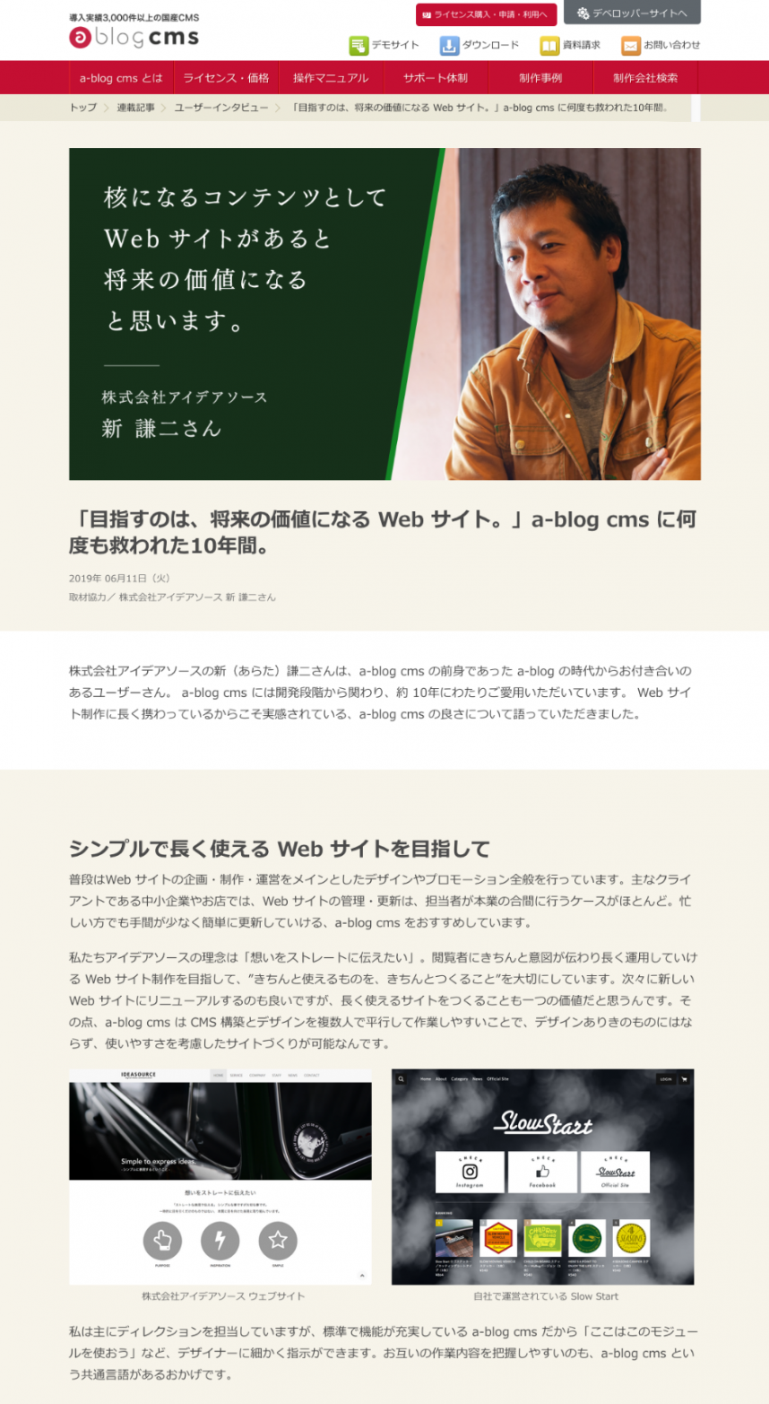 「目指すのは、将来の価値になる Web サイト。」a-blog cms に何度も救われた10年間。