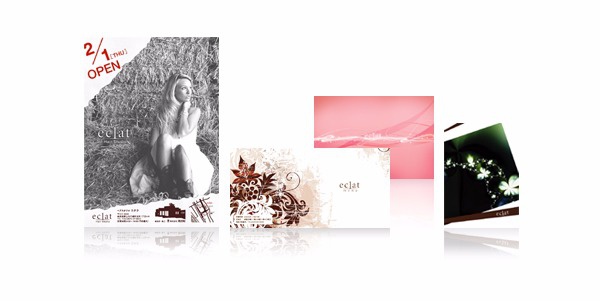 岐阜県郡上市八幡町の美容院「eclat」様の新規オープンにあたり、販促ツール一式の制作を承りました。