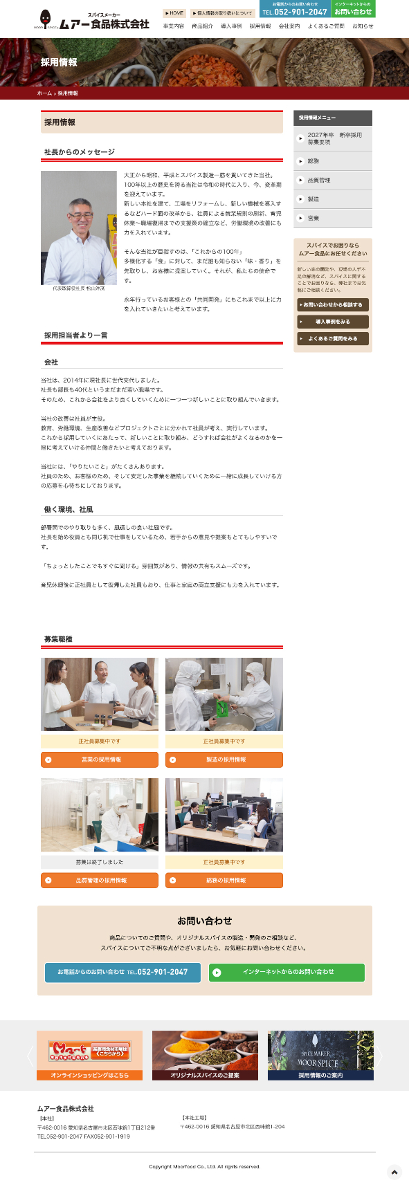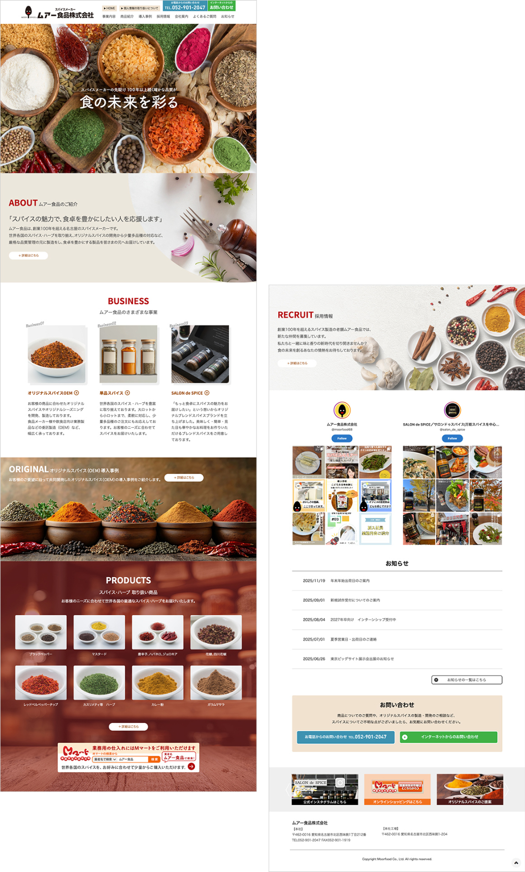 ムアー食品株式会社様のWebサイトの改善作業を担当させていただきました。